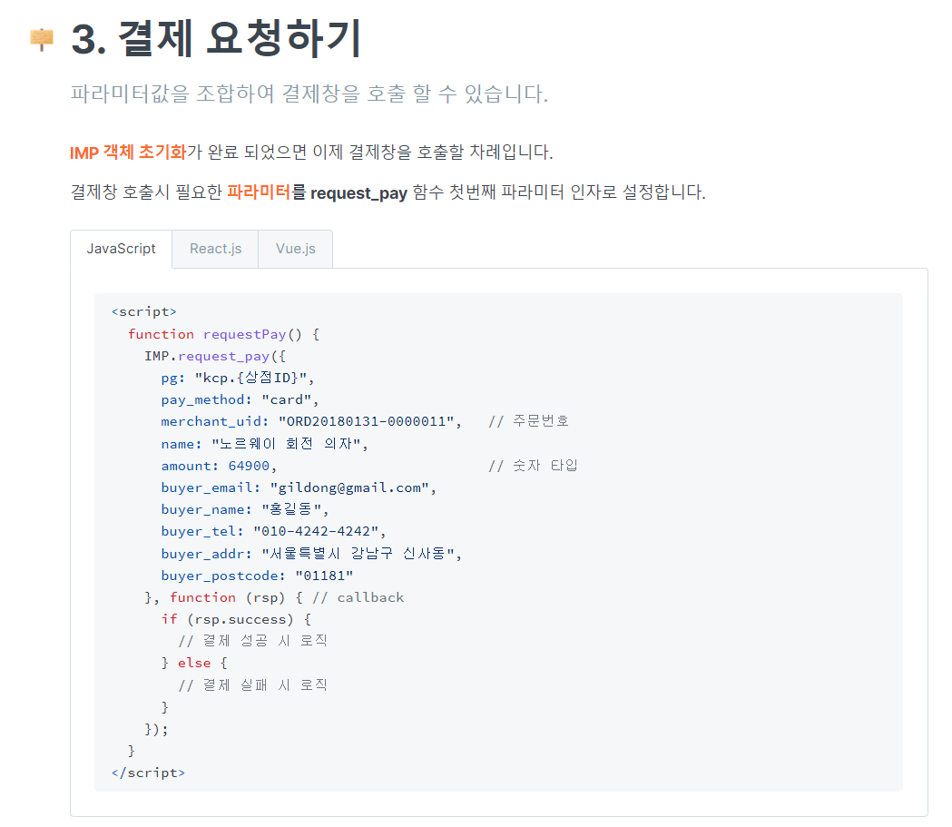 마지막으로 아래 코드는 결제하기 버튼에 대한 속성을 설명하기 위한 사진입니다.