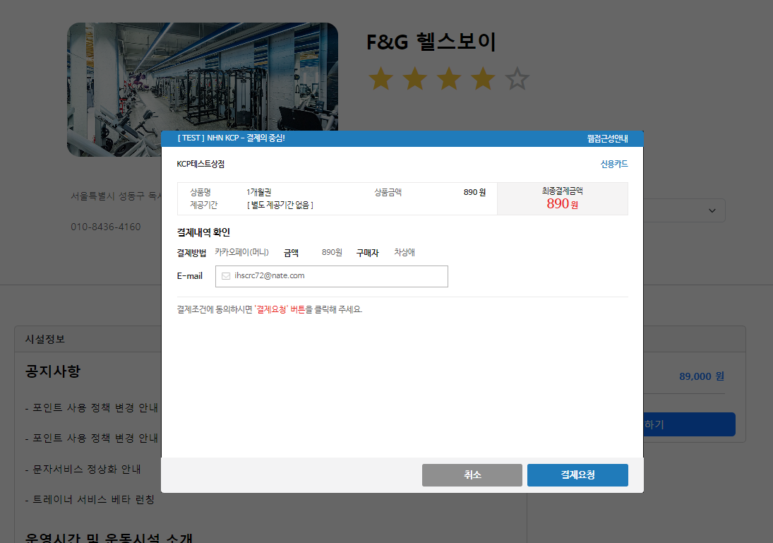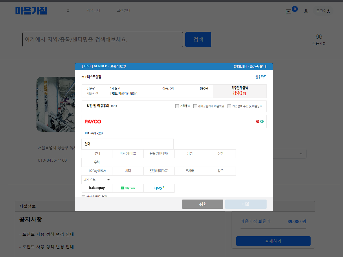 회원권의 seq와, 로그인 시 부여받은 세션( 아이디, 닉네임, 권한 등..) 을 통해서 결제창을 호출할 수 있습니다.