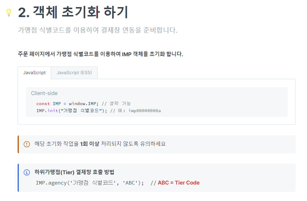 다음으로는 결제창 연동을 위해 포트원에서 제공하는 객체를 초기화 해야합니다.