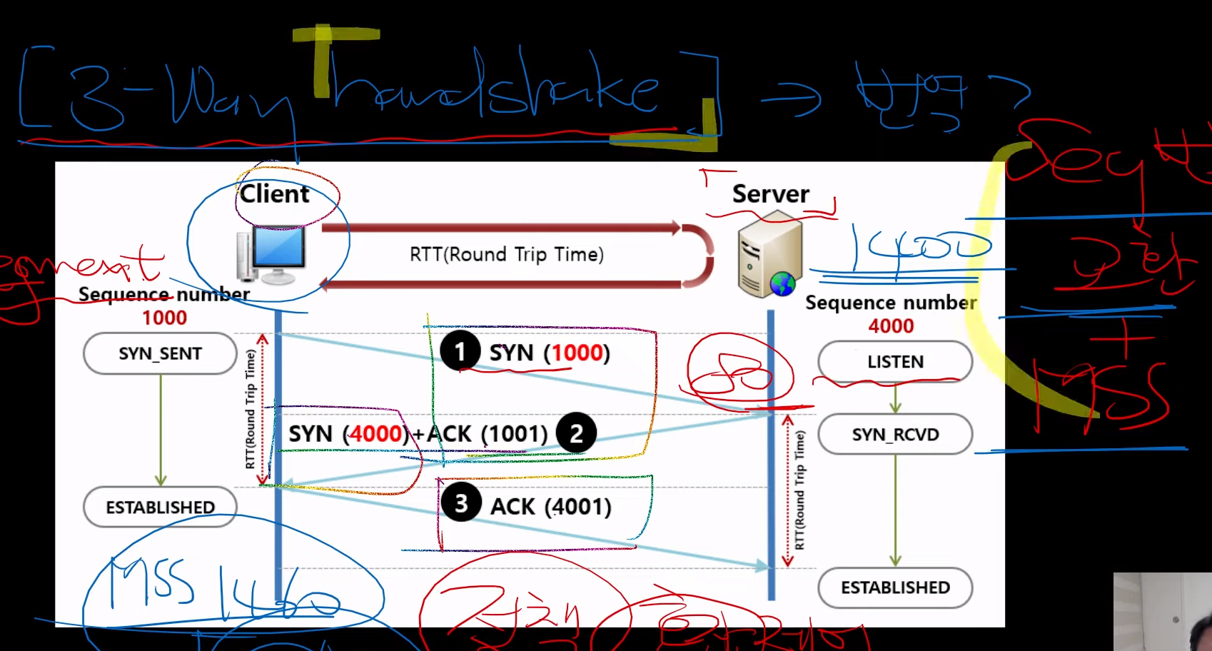 추가로, 위에서 데이터를 주고받을 때, MSS(maximum segment size)도 같이 보내며, 서로의 MSS 를 비교해서 둘 중 낮은 MSS로 선정한다.