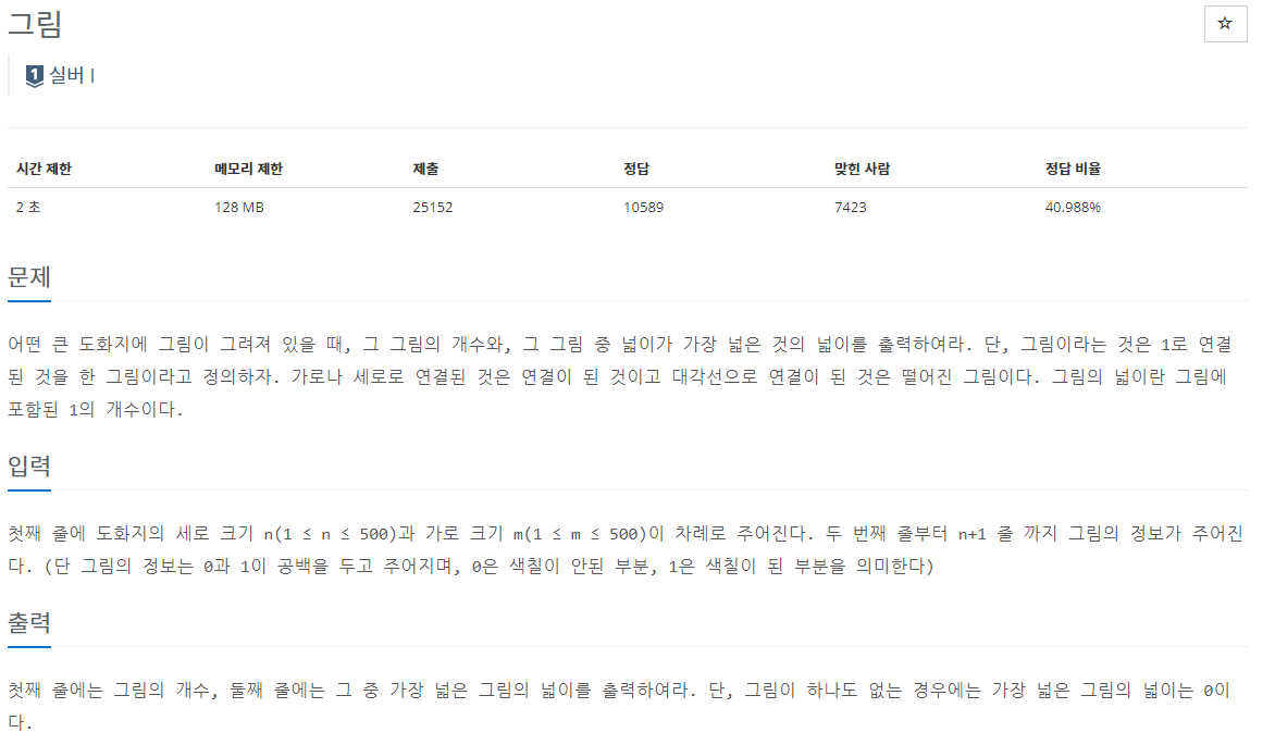 - BFS 돌면서 그림 개수 + 1, 최대값 갱신