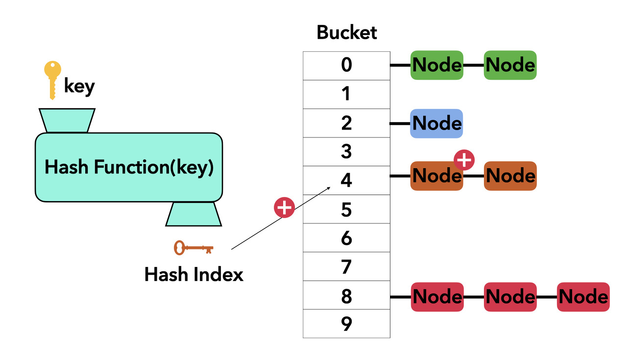 해시 값은 순서를 보장하지 않기 때문에, 해쉬 펑션에 따라서 어느 인덱스에 들어갈지 정확히 알 수 없다.