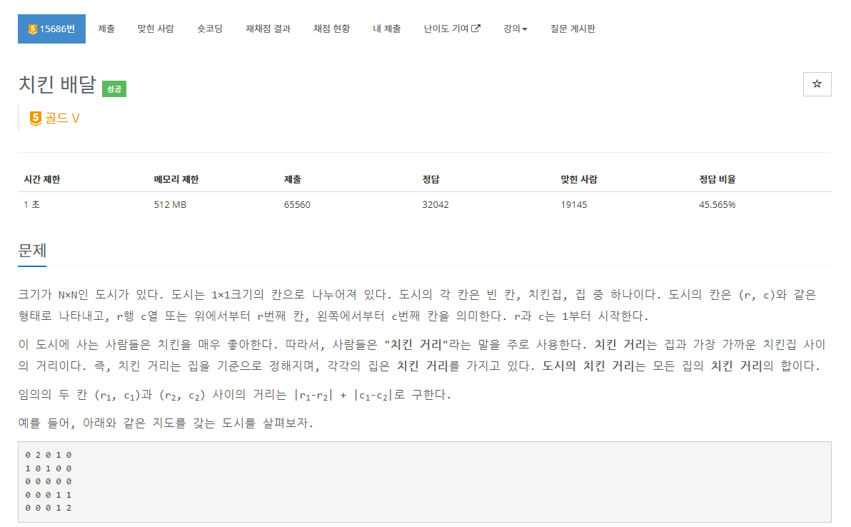 chicken.append( [i, j]) # 치킨집 좌표 저장