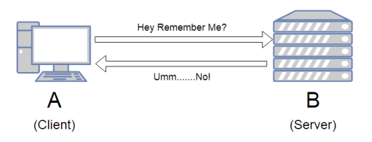 HTTP는 요청을 보내고 응답을 받으면 클라이언트와 서버 간의 연결을 끊는다. 이와 같이 클라이언트와 서버 간의 연결을 끊기 때문에 각 요청 사이에 상태를 공유할 수 없다. 이 때문에 HTTP를 무상태 프로토콜이라고 한다.