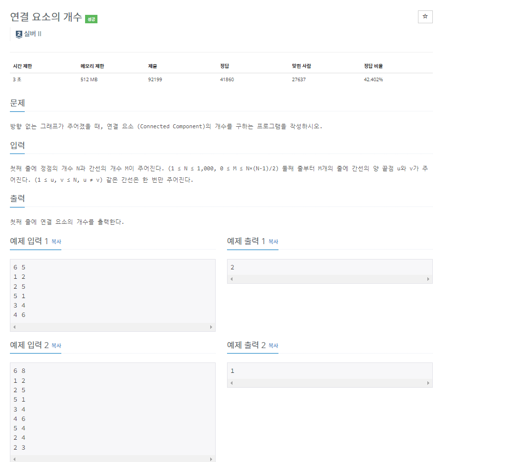 [BaekJoon] 백준 알고리즘 11724번 / 연결 요소의 개수 / DFS / Python