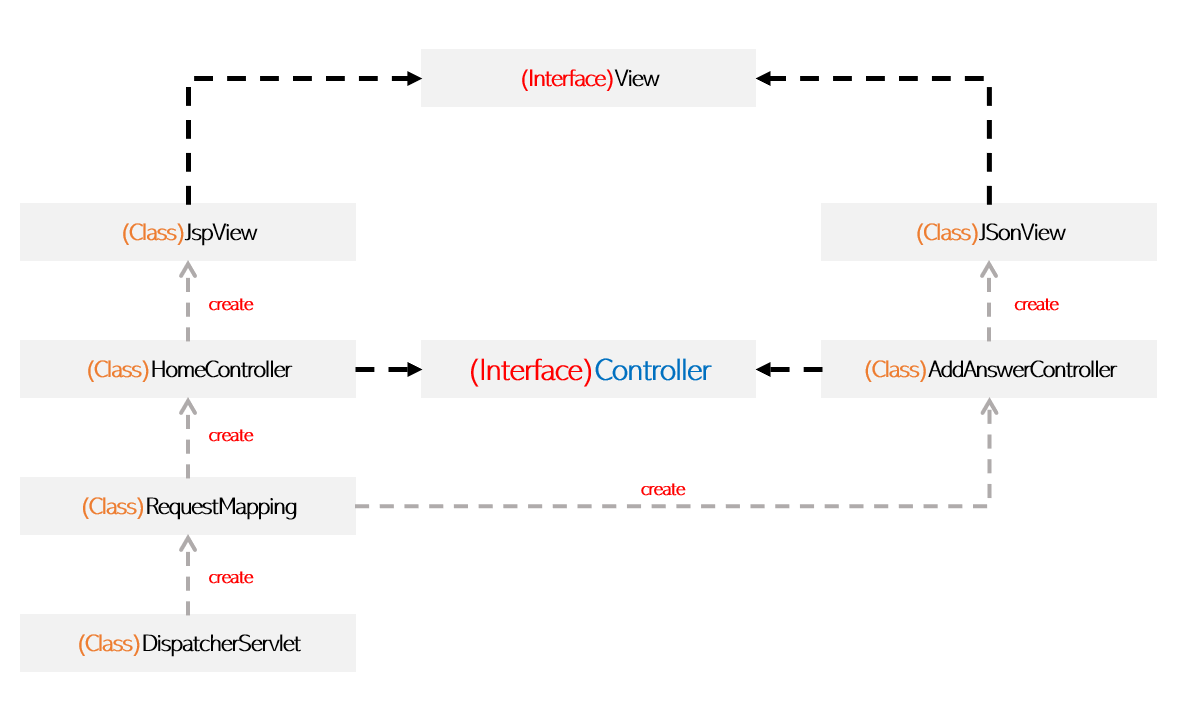 - 인터페이스 View 를 구현하는 JspView와 JSonView를 생성해 각 View 맞도록 구현한다.