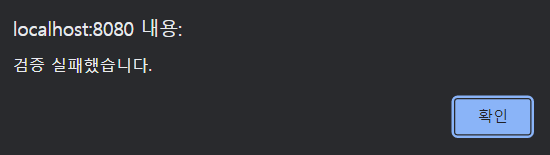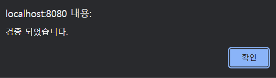 - 최종적으로 결과값이 서로 같다면 alert() 메소드를 통해 메시지를 출력