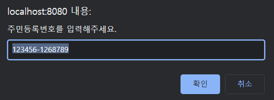 - prompt() 메소드를 이용해서 주민등록번호를 입력받고