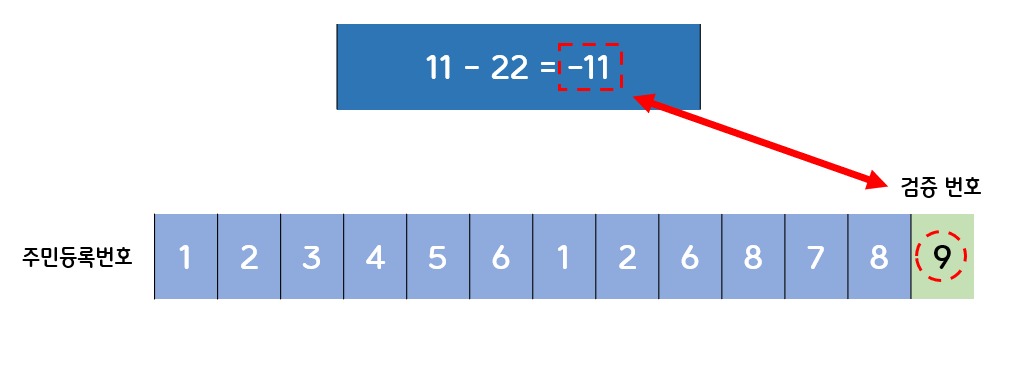 "11" 뺴기를 한다.( 유효하지 않은 주민등록번호로 테스트를 했기에 결과 값이 -11이 됨.)