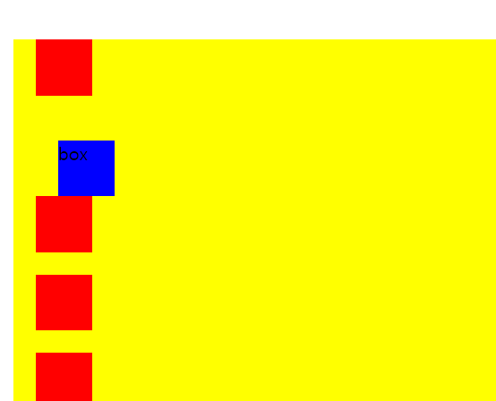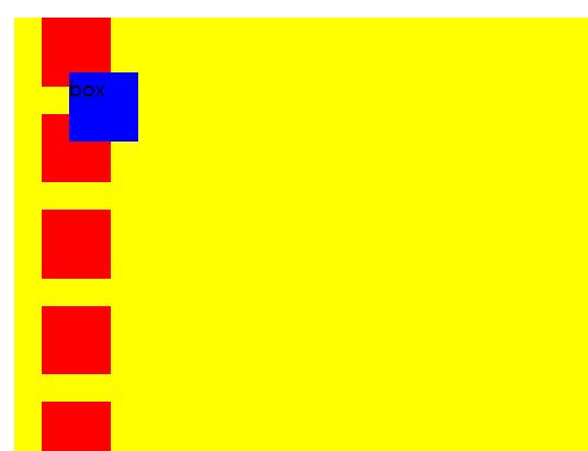 파란색 박스도 position의 값을 absolute로 변경해보자.