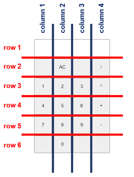 row도 동일합니다.(참고로 이번 계산기 예제는 row를 병합할 일이 없습니다.)