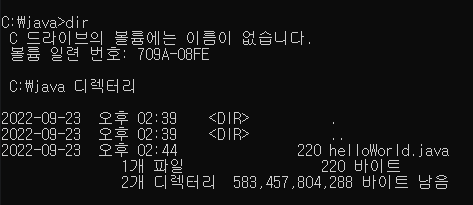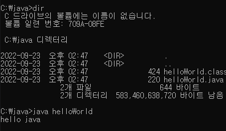위와 같이 javac 명령어로 컴파일한 '.class' 파일을 실행시킬 수 있습니다.