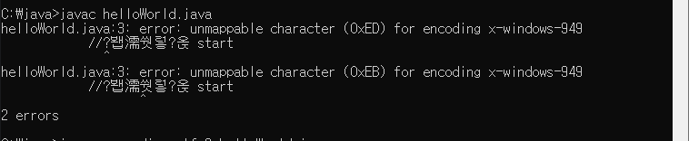 [Java] cmd / java / javac / javac -encoding utf-8 *.java / unmappable character for encoding ms949 에러