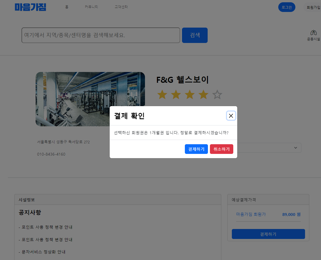 회원권의 seq와, 로그인 시 부여받은 세션( 아이디, 닉네임, 권한 등..) 을 통해서 결제창을 호출할 수 있습니다.